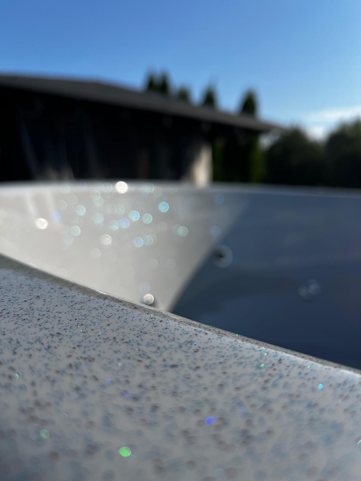 Shine edition ar gaiši spīguļojošu granīta krāsojuma kubla vannu un tumšu antracīta apdari.
